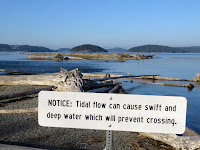 Whiffen Spit stretches, somewhat crookedly, across the mouth of Sooke Harbor. It must be more than a kilometer in length, with a navigation marker at the tip. It's a wonderful park and on a pleasant October Sunday morning, half the dogs on Vancouver Island were out for walks on it. I suspect that the footpath began as a road, perhaps access to whatever was built on the old concrete foundations farther out on the spit.
