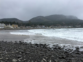 South of Seaside, the wide sandy beach runs into the rocky headland of Tillamook Head, which projects westward into the Pacific. But even this northern edge of the headland has a beach, it's just a very different one. The lower beach is rounded boulders and the upper beach is a coarse gravel and cobble berm. I assume this coarse material is all basalt, eroded from the promontory and spread eastward along it's northern shore.